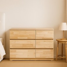 원목 소재로 제작된 6단 와이드 서랍장으로, 넓은 수납 공간을 제공하며 원색 디자인으로 자연스러운 분위기를 연출하고 다양한 공간에 조화롭게 배치할 수 있습니다.