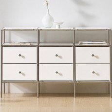 라자가구 세레나 미드센추리 강화유리 모듈 철제 선반 6단서랍 다용도 수납 거실장 1200, 화이트, LPM 상판