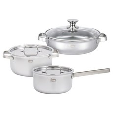 스테니 인덕션 무연마제 통5중 스테인리스 냄비세트 3개, 편수냄비 16cm + 양수냄비 20cm + 전골냄비 24cm, 1세트