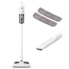 무선 설계로 자유로운 청소가 가능하며 화이트와 실버 컬러로 깔끔한 디자인을 갖춘 실용적인 무선 청소기다.