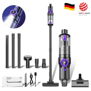 강력한 흡입력과 레이저 청소 기능을 갖춘 무선 진공청소기로 편리한 사용성과 한국내 1년 AS 지원이 제공된다.
