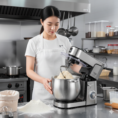 5리터 용량의 스탠드형 반죽기로, 가정과 업소에서 밀가루 반죽과 제빵을 효율적으로 처리할 수 있는 다용도 제빵 기계이다.