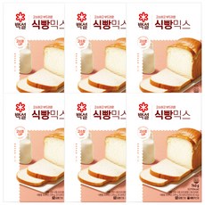 간편하게 집에서 부드럽고 촉촉한 식빵을 만들 수 있는 백설 식빵믹스로, 760g 용량의 믹스 6개 세트로 구성되어 있다.