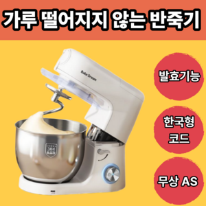 7리터 대용량으로 반죽과 발효를 한 번에 처리할 수 있는 전동 스탠드 반죽기로, 홈베이킹은 물론 업소용으로도 활용하기에 적합하다.