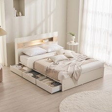 삼익가구 NEW 루시드 침대는 화이트 프레임과 아이보리 본넬스프링 매트리스가 포함된 4단 서랍 수납 침대로, LED 조명이 내장되어 실용적이면서 편안한 수면 환경과 깔끔한 공간 활용을 제공합니다.